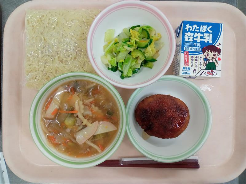 あんかけラーメン(中華めん) ゼリーフライ 白菜のゆず香和え 牛乳