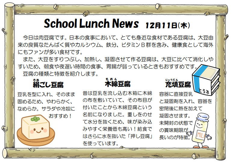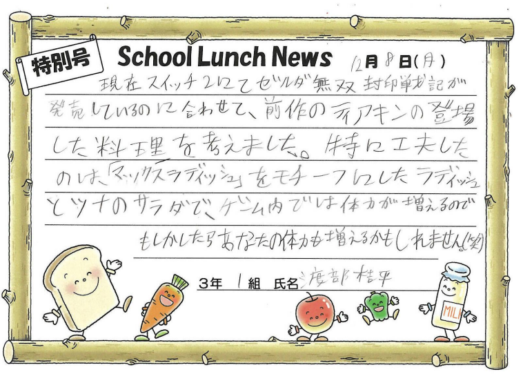 3年1組 渡部桔平さんの献立です