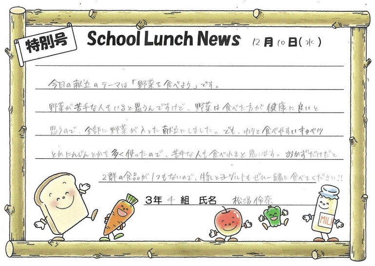 3年4組 松沼伶奈さんの献立です