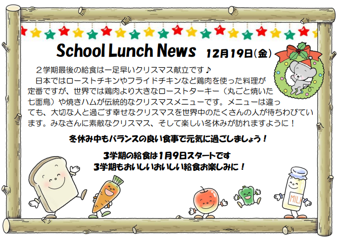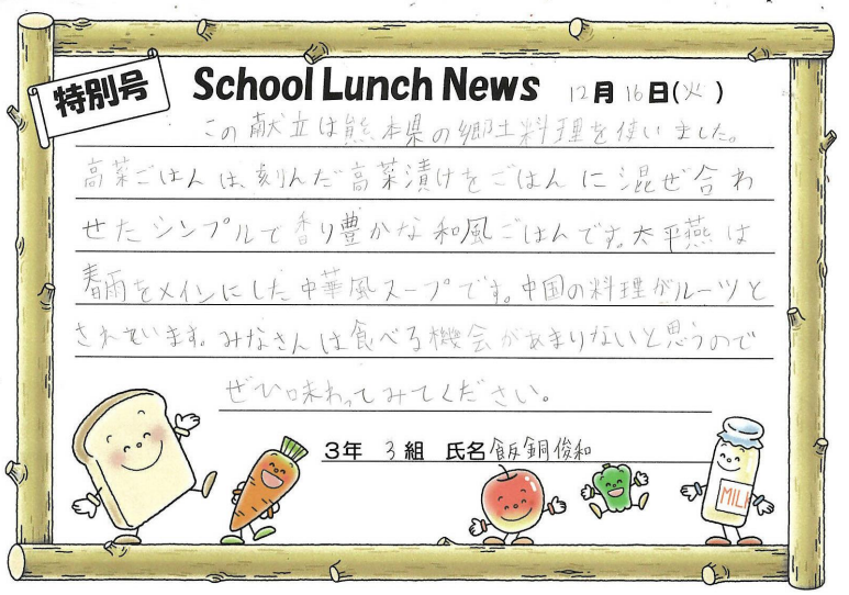 3年3組 飯銅俊和さんの献立です
