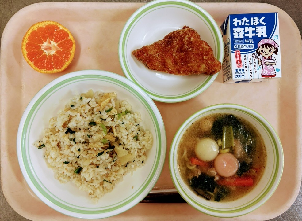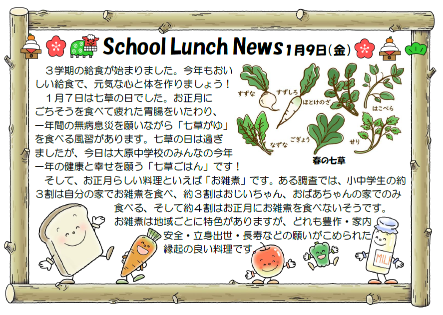 七草ごはん 赤魚の竜田揚げ 紅白もち雑煮 牛乳